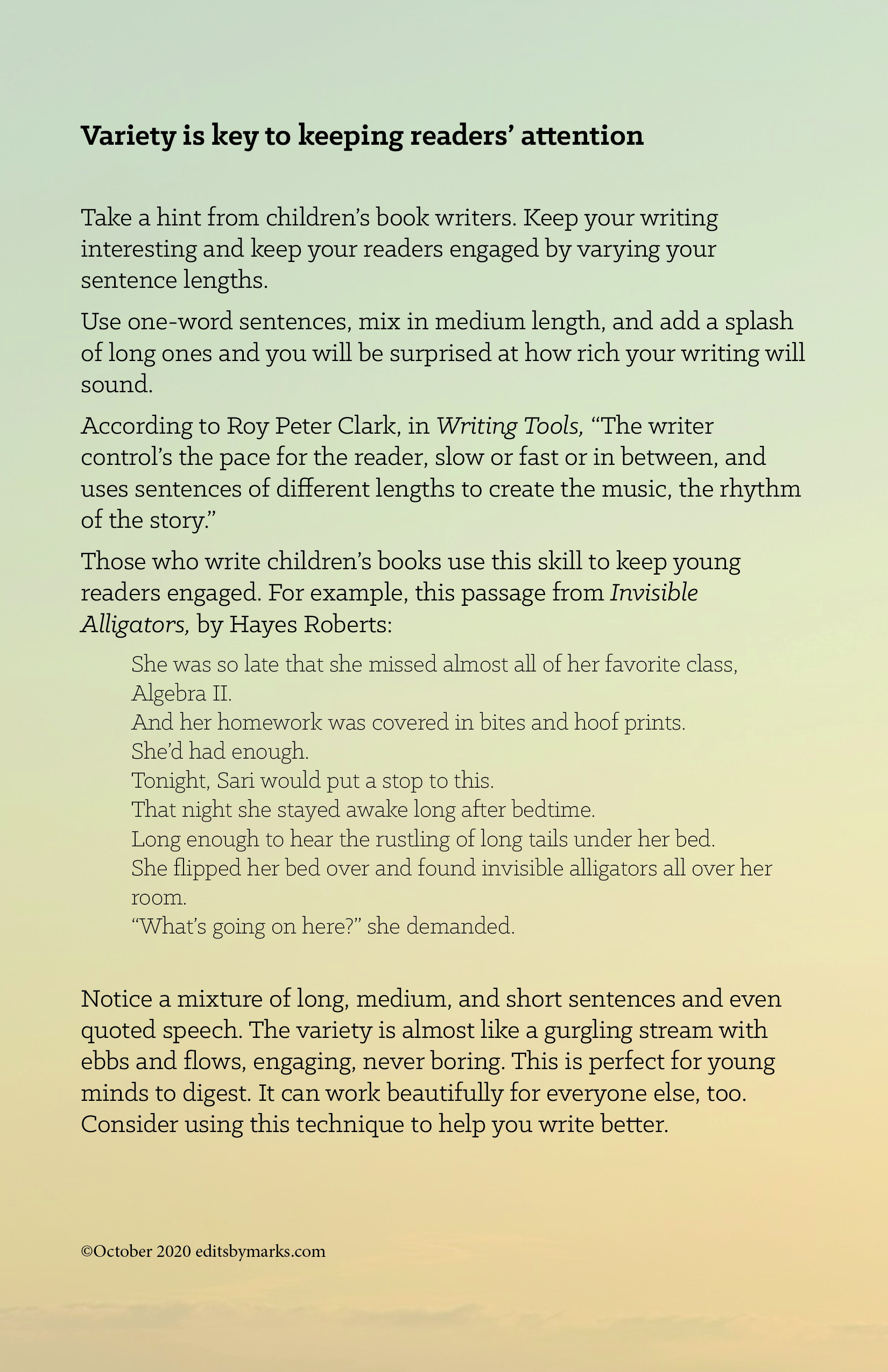 Use This Quick Check… on How to Craft a Good Messa… Dawn Marks on A Mango a Day! Message from… Dawn Marks on Build Variety in Your Wri… Sharon Marks on Something About Quotation… The dutty is "the gr… on Being Possessive Archives