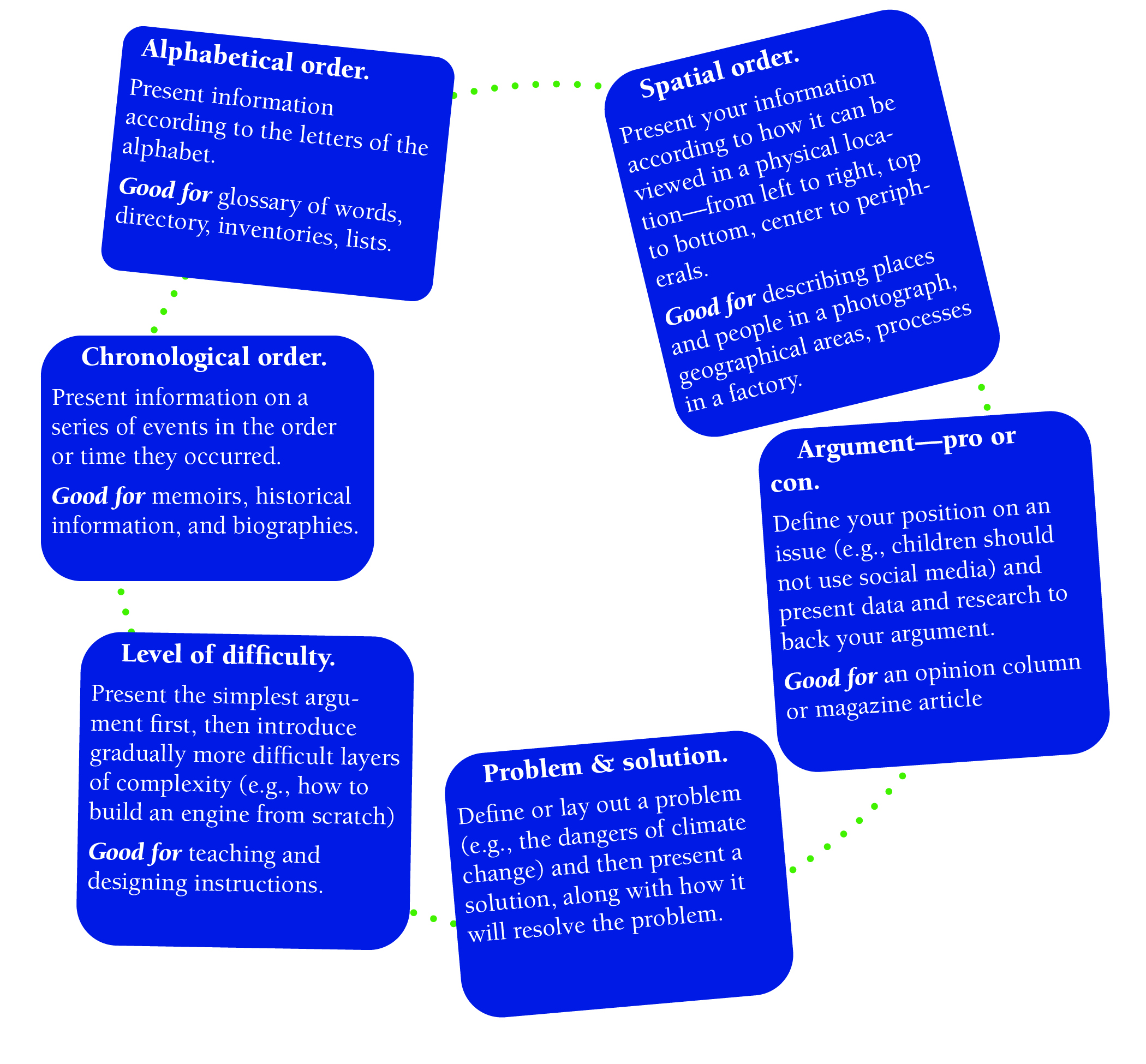 Here are six basic choices for presenting your written information, according to purpose.